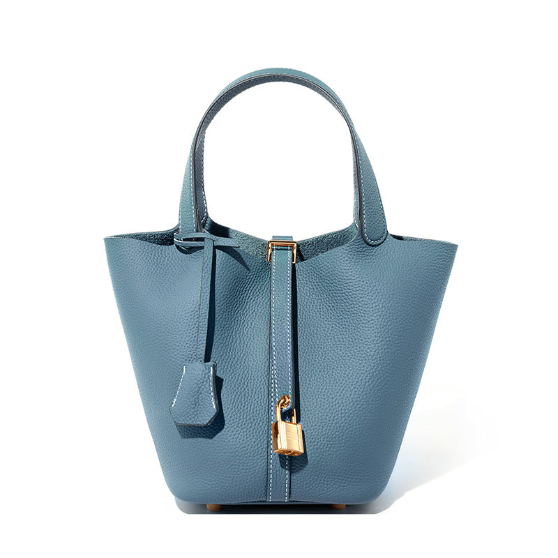 Kompakt boyutları ve minimalist tasarımıyla öne çıkan bu mini Picotin çanta, günlük stilinize zarif bir dokunuş katıyor. Altın tonlu kilit detayları ve doğal granül derisi, çantaya sofistike bir hava kazandırırken, metal ayakçıklar tabanını çizilmelere karşı koruyor. Sadece 0,42 kg ağırlığı sayesinde omuzunuzda rahatlıkla taşıyabilirsiniz.